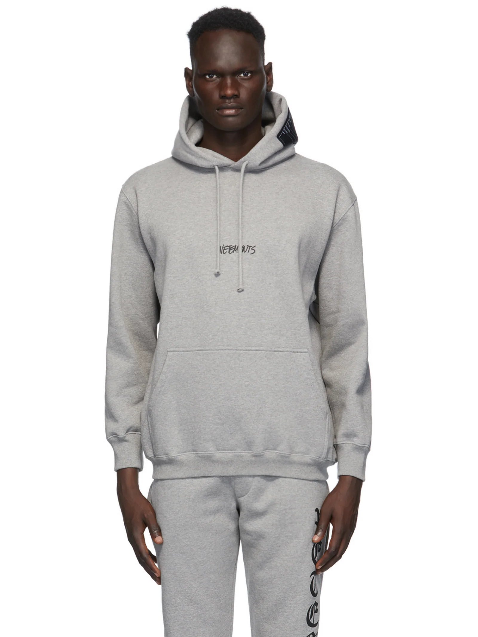 VETEMENTS WRITTEN LOGO HOODIE GREY